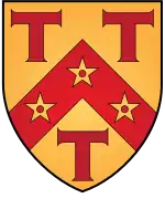 ![]() Blazon: Or on a chevron between three tau crosses gules as many pierced mullets of the field. | ||||||||||||||||||||||
