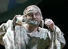 ![]() Caliban (Todd Scofield) has a conversation with his imaginary friends in Folger Theatre's production of Shakespeare's The Tempest in 2007. | |