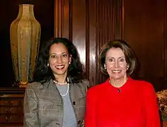 رئیس مجلس نانسی پلوسی در دیدار با کامالا هریس دادستان جدید ناحیه ای سن فرنسیسکو، ۳۰ مارس ۲۰۰۴