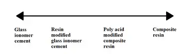 ترکیبات ترکیبی در دهه ۱۹۸۰ معرفی شدند و معمولاً به عنوان سیمانهای آینومر شیشه ای اصلاح شده با رزین (RMGICs) شناخته میشوند.[1] این ماده شامل یک پودر حاوی شیشه فلوئورو آلومینوسیلیکات رادیواکتیو و یک مایع جهت انجام عکسبرداری است که در بطری یا کپسول تیره نگهداری میشود.[1] این مواد کامپوزیتی به تنهایی برای حفرههای کلاس II مورد استفاده مناسب نبودند.[3] RMGICها میتوانند جایگزین این ترکیبات شوند. این مخلوط یا رزین و شیشه آینومرها اجازه میدهند تا مواد را با فعال سازی نور (رزین) تنظیم کنید، کهپایداری طولانی مدت تری را ارائه میدهند[1] همچنین این ترکیبات دارای سیمان گلس آینومر آزادکننده فلوراید نیز هستند و خاصیت چسبندگی بهتری به دندان نیز دارد.[1] در حال حاضر RMGICها بیش از GICهای سنتی برای پر کردن حفرههای دندانی توصیه میشود[4] تفاوت زیادی بین ترکیبات کامپوزیتی اولیه و جدید وجود دارد.[3]