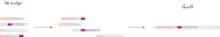 یک توالی کانتیگ یک توالی مداوم است که از بازسازی قطعات کوچک دی ان ای توسط توالی یابی پایین به بالا به حاصل میشوند. این تعریف از کانتیگ با تعریف اولیه «راجر استادن» (۱۹۷۹) مطابقت دارد.[6]توالی یابی پایین به بالا شامل برش دادن ژنوم دی ان ای به قطعات کوچکتر ("خوانده")، توالی یابی این قطعات، بازسازی آنها به کانتیگ و در نهایت به طول کل ژنوم است. از آن جا که فناوریهای اخیر به ما تنها امکان توالی یابی از روی قطعات کوتاه دی ان ای (به طول ۳۰۰ تا ۱۰۰۰ نوکلئوتاید) را میدهند، لازم است که قبل از توالی یابی ژنوم به قطعات کوچک تقسیم شود.[7] در توالی یابی بالا به پایین، دی ان ای تقویت شده به صورت تصادفی به قطعاتی به طول مناسب برای توالی یابی برش داده میشود. خواندههای دنباله دنباله، که توالی قطعات کوچک را شامل میشوند، در یک پایگاه داده درج میشوند. سپس نرمافزار توالی یابی[7] در پایگاه داده به دنبال جفتهای همپوشان میگردد. توالی یابی یه صورت جفت جفت باعث تولید شدن کانتیگهای طولانی تری از دی ان ای میشود. با چندین بار تکرار این مرحله، که در ابتدا شامل قطعات کوتاهتر و به مرور زمان شامل قطعات طولانیتر است، توالی کامل دی ای ان یک کروموزوم قابل تشخیص میشود.