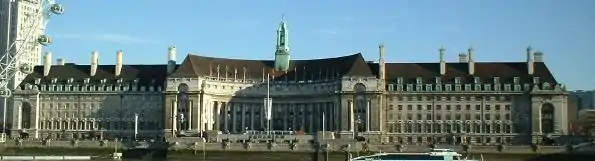 ![]() County Hall from the north bank of the Thames | |