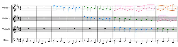 صدایِ باسِ موجود در کانن تنها از دو میزان تشکیل شدهاست که بارها در قطعه تکرار میگردد. به این تکنیک در موسیقی آستیناتو گفته میشود.