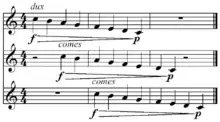 - در کانن کاهشی[persian-alpha 4]، نتهای صدای دوم با کشش کمتری نسبت به ملودی اصلی حرکت میکنند.