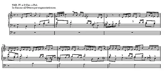 - در کانن افزایشی[persian-alpha 3]، نتهای صدای دوم با کشش بیشتری نسبت به ملودی اصلی حرکت میکنند.