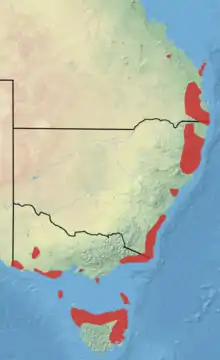 | گستره پراکندگی کانگوروی خرگوشی بینیدراز | |