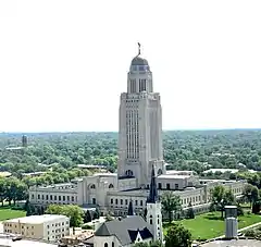 ![]() Aerial view of the Nebraska State Capitol's northwest corner. | |
