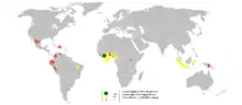 امروزه بیشترین تولید کاکائو در نواحی استوایی آفریقا مانند ساحل عاج و بخشی از آمریکای جنوبی مانند برزیل کشت میشود.[2]