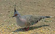 - مشارکتکنندگان ویکیپدیا. «Crested pigeon». در دانشنامهٔ ویکیپدیای انگلیسی، بازبینیشده در ۲۶ مارس ۲۰۱۷.