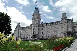 ![]() Top left: Saint Louis Gate in Ramparts of Quebec City; Top right: View of downtown Vieux Quebec Cap Blanc Colline Parlementaine and Bassin Louise waterfront area from Saint Laurent Street in Levis area; Centre: View of Frontenac Castle and The Holy Trinity Cathedral in downtown Quebec City; Bottom left: Pierre Laporte Bridge, Bottom right:Quebec national assembly | |