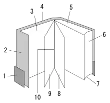 # نوار روی جلد # لَببرگردان # آستر بدرقه # روکش جلد # لب بالا # لب جلو # لب پایین # صفحه سمت راست. # صفحه سمت چپ # حاشیه عطف