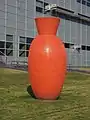 مجسمهای به شکل آمفرا در جلوی کتابخانه. سطح مجسمه با حروف پوشیده شده است.