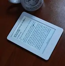 مشارکتکنندگان ویکیپدیا. «E-reader». در دانشنامهٔ ویکیپدیای انگلیسی، بازبینیشده در ۳۰ آبان ۱۳۹۴.