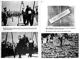 ![]() صفحات عکس ۲۱–۲۴ که میان صفحههای ۷۴ و ۷۵ از کتاب سیاه لهستان قرار گرفتهاند، شامل بخش ۱. کشتارها و شکنجهها