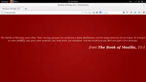 چنین کتابی در واقعیت وجود ندارد اما از نقلقولهایی که از این کتاب در نسخههای مختلف مرورگرهای نتاسکیپ و موزیلا آمدهاست میتوان چنین دریافت که کتابی با موضوعات آخرالزمانی همچون کتاب مکاشفه یوحنا در عهد جدید است. با نوشتن about:mozilla در آدرسبار در هر نسخه از مرورگرها یک پاراگراف بر روی زمینهای به رنگ شاهبلوطیتیره نمایش داده میشود.