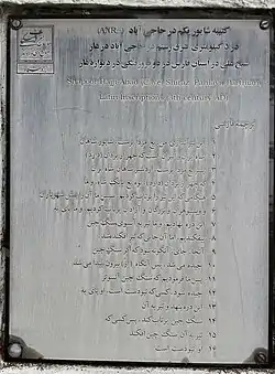 کتیبه شاپور یکم در حاجی آباد در درهٔ رودخانه پلوار در نزدیک آبادی حاجی آباد در جایی به نام غار شیخ علی یا زندان جمشید کتیبهای بر صخرهٔ کوه به دو زبان پهلوی و زبان پارتی نگاشته شدهاست. این ناحیه در چند کیلومتری نقش رستم قرار دارد و جزو ناحیهٔ استخر قدیم بودهاست. تحریر فارسی میانه دارای ۱۶ سطر و پارتی دارای ۱۴ سطر است. در ابتدا شاپور یکم نام و عنوان خود و پدر و جدش را ذکر میکند و سپس مضمون کتیبه میآید که دربارهٔ تیراندازی وی است. کتیبه با جملهای دعایی پایان میگیرد.