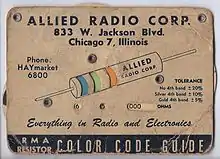 - Wikipedia contributors, "Electronic color code," Wikipedia, The Free Encyclopedia, https://en.wikipedia.org/w/index.php?title=Electronic_color_code&oldid=666902371). (بازبینی ۲۲ ژوئن ۲۰۱۵)
