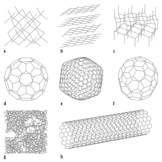 d.e.f. فولرنها (C۷۰ ،C۵۴۰ ،C۶۰) g. کربن بیشکل، h. نانولوله کربنی