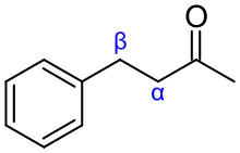 در نامگذاری ساختارهای آلی، نخستین کربن متصل به گروه عاملی کربن آلفا (α carbon) و دومین کربن، کربن بتا (β carbon) نام دارد. همچنین هیدروژن متصل به کربن آلفا، هیدروژن آلفا و هیدروژن متصل به کربن بتا، هیدروژن بتا نامیده میشود. لازم به ذکر است که این شیوه نامگذاری مورد تأیید اتحادیه بینالمللی شیمی محض و کاربردی (آیوپاک) نیست چرا که در روش آیوپاک از اعداد به جای حروف یونانی برای نامگذاری اتمها استفاده میشود اما این روش، روشی عامهپسند و متداول است.[1]