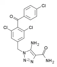 کربوکسیآمیدوتریازول (به انگلیسی: Carboxyamidotriazole) با فرمول شیمیایی C۱۷H۱۲Cl۳N۵O۲ یک داروی بلوککننده کانال کلسیم با شناسه پابکم ۱۰۸۱۴۴ است. که جرم مولی آن ۴۲۴٫۶۶۸۴۸ g/mol میباشد.
