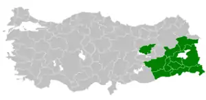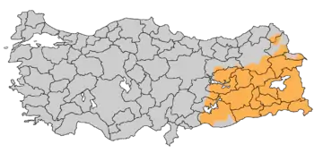 | ناحیه آناتولی شرقی و ناحیه آناتولی جنوب شرق استان استانبول، استان آدانا و استان مرسین | |