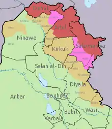 KDP and PUK-controlled areas of Kurdistan