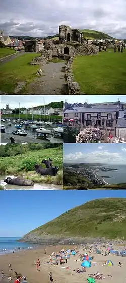 ![]() Clockwise from top: Aberystwyth Castle, Dolau Inn, Aberystwyth shore, Mwnt, Water buffalo in River Teifi, Aberaeron harbour | |