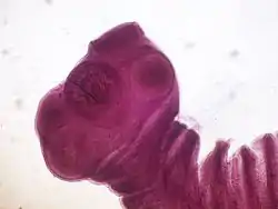 دستگاه تناسلی این کرمها نر و ماده هستند و در هر قطعه از بدن آنها هر دو دستگاه تناسلی نر و دستگاه تناسلی ماده وجود دارد. دستگاه تناسلی نر در قطعات نزدیک تر به گردن شروع به تشکیل شدن مینماید؛ ولی دستگاه تناسلی ماده در قطعات پایینتر بوجود میآید؛ بنابراین بیضهها زودتر از تخمدانها تشکیل میشود. در بندهای میانی بدن، هر دو دستگاه وجود دارد. به تدریج که به انتهای بدن نزدیک میگردد. در بندهای متوالی عمل لقاح انجام میشود و تخمها تشکیل میگردند. در بندهای آخر، این دستگاه تناسلی از بین میرود و فقط آثاری از آنها باقی میماند.