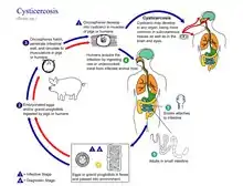 در صورت جذب تخم کرم کدو، انسان دچار انگل رودهای نمیشود، ولی میتواند میزبان واسطه قرار گیرد. در این صورت لاروها توسط جریان خون به ماهیچهها، قلب، چشم و در حالت وخیمتر به مغز و نخاع منتقل میشوند و در آنجا ممکن است بتوانند تشکیل کیست دهند. این حالت در مورد کرم کدوی خوک متداولتر است.