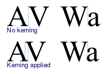 کرنینگ برای نزدیککردن دو حرف A و V به طوری که سریف آنها همپوشانی داشته باشد.