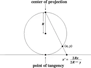 رابطه زیر قطب شمال را به مرکز و قطب جنوب را به ∞ نقش میکند. با فرمول زیر :