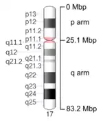 - "Homo sapiens (human) Chromosome 17". NCBI Map Viewer. National Center for Biotechnology Information. Retrieved January 20, 2017.