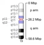 - "Homo sapiens (human) Chromosome 19". NCBI Map Viewer. National Center for Biotechnology Information. Retrieved October 17, 2013.