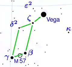 Wega,[3] Lucida Lyrae,[4] Alpha Lyrae, α Lyrae, 3 Lyr, GJ 721, HR 7001, BD +38°۳۲۳۸, HD 172167, GCTP 4293.00, LTT 15486, SAO 67174, HIP 91262.[1] | |