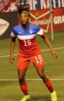 ![]() کریستال دان در یکی از مسابقات با پیراهن تیم ملی فوتبال زنان ایالات متحده آمریکا در سپتامبر ۲۰۱۴ | |||