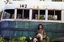 ![]() یک خودنگاره از کریس مککندلس در «استمپید تِریل» در مقابل اتوبوسی که مدتی در آن زندگی میکرد و بعدها جسدش را در آن یافتند. این عکس، بهصورت یک فیلمِ ظاهرنشده در دوربین او پیدا شد. | |