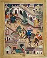 تصویری از حمزهنامه با معماری خاص قلعه فولاد در پسزمینه داستان