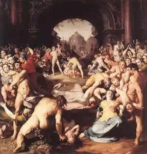 این اثر نیمه منریسم که صحنه کشتار کودکان بیگناه در بیت لحم توسط سربازان هرود در هنگام تولد عیسی مسیح را به تصویر کشیدهاست، دومین کار مشابه نقاش با این سناریو است که در فاصله کمتر از یک سال خلق شدهاست. هرود هنگامی که خبر تولد پسر بچهای در قلمرو حکومتش را شنید که بنا به گفته منجمین دربارش، پادشاه یهود خواهد شد، دستور داد تا تمام پسران زیر دو سال در بیت لحم کشته شوند.