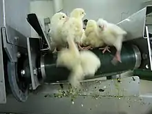 جوجههای نر بر روی تسمه نقاله ماکتور