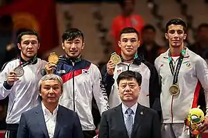 - "Wrestling Technical Handbook" (PDF). 2018 Asian Games official website. Archived from the original (PDF) on 14 August 2018. Retrieved 18 August 2018.