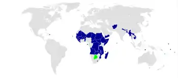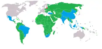 - کشورهای توسعهیافته، و کشورهای تحتالحمایه آنها (برای مشاهده فهرستی از آنها، نگاه کنید به کشورهای توسعهیافته)