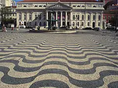 پرتغالی پیاده رو از بازالت سیاه و سفید سنگ آهک در لیسبون