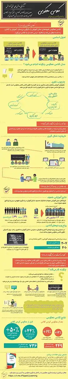"یادگیری معکوس" یک رویکرد آموزشی است که در آن آموزش مستقیم از فضای یادگیری گروهی به سمت فردی حرکت می کند فضای یادگیری و در نتیجه فضای گروهی به یک محیط یادگیری پویا و تعاملی تبدیل می شود و مربی دانش آموزان را هنگام استفاده از مفاهیم و درگیر کردن خلاقانه در موضوع، راهنمایی می کند.