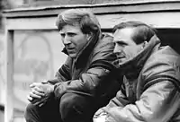 ![]() Klaus Sammer (left) on the Dynamo Dresden bench, with his assisant, Dieter Riedel. | |||