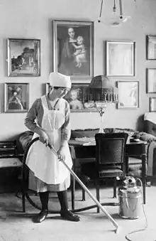 یک خدمتکار مشغول تمیز کردن خانه در دانمارک در سال ۱۹۱۲.