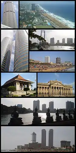 ![]() Clockwise from top left: BOC Tower, Colombo Skyline, Colombo Skyline (Gangaramaya Temple), Colombo Skyline (Galle Face), Old Parliament, Colombo Skyline (Gangaramaya Temple), BOC Tower and WTC Twin Tower, Independence Square, WTC Twin Tower | |