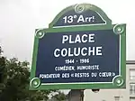 - مشارکتکنندگان ویکیپدیا. «Coluche». در دانشنامهٔ ویکیپدیای انگلیسی، بازبینیشده در ۱۵ مه ۲۰۱۵.