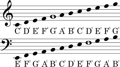 | کلید دو | دو وسط (C4) | خطی که از وسط کلید میگذرد. | |