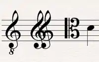 این مورد اغلب در بخش تنور در حالتی که بهشکل STAB[5] تنظیم شده باشد، کلید تریبل با علامت اکتاو پایین آن، به این معنی بود که نت نوشته شده یک اکتاو پایینتر صدا خواهد داد. کلید تنور واقعی عموماً در موسیقی آوازی مورد استفاده قرار نگرفته، این کلید تریبل "اکتاو شده" کیلد تنور نامیده میشد. کلید مشابهی بعضی اوقات برای هورن باریتنون مورد استفاده قرار میگرفت. در بعضی نسخهها، برای همین منظور از کلید تریبل دوبله شده -دو کلید سل که روی هم قرار میگرفتند- استفاده میشد.