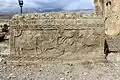 Decorative tombstone depicting a hunting scene adjacent to the western façade of the church